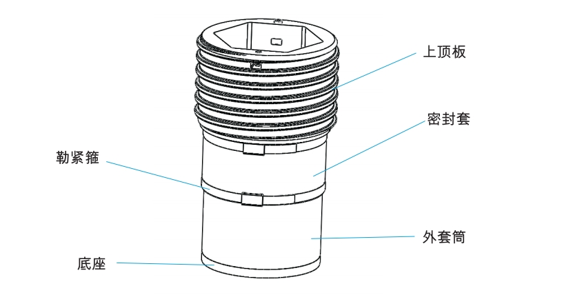 无级调整双弹簧隔振器由内弹簧、外弹簧、外套筒、转接套、止转块、底座、连接杆、上顶板、橡胶密封圈、阻尼剂等部分组成。